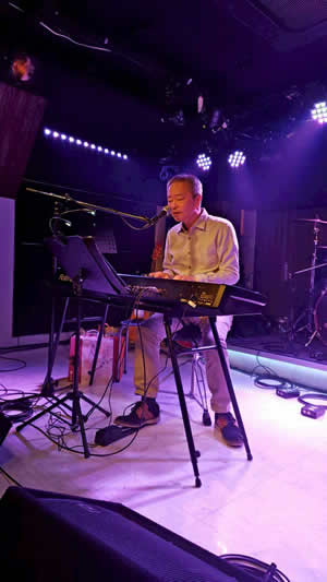 | <MCそのA> ありがとうございました。浜田良美さんの「My Song」をお届けしました。 2曲目はこれから本編に登場されるコッキーポップシンガーの皆さんに捧げたいと思います。 「あなたこそが私にとっての音楽」というメッセージです。 オリジナル曲の“You are my musician”です。 お聴きください。 そして、何事もなかったように2曲目“You are my musician”へ。 リハのあと、決死の思いで声出ししたのが奏功し、歌っている途中から自分でも段々ノッてくるのが自覚されました。 そうなると、サビの高音を出すのが楽しくて。 間奏のウィンドシンセも何百回も練習して、普通の精神状態なら吹き間違えることはないというレベルには仕上げてきました。 ただ、7月ライブでウィンドシンセを吹き始めたら“音が鳴らない”という現象もあったので、応援団の皆さんは気が気でなかったとのこと。 これは、ウィンドシンセの電源を入れたのち、マウスピースを吹いたり、キーに触れたりしないで一定時間が経過すると、節電のために勝手にoffになるというシステムのために起きる現象です。 私だけではなく、音響の方々、バイオリンの仁多理恵ちゃんとピアノの河本充代(繰り返し言いますが、妻ではなく妹です)もそこには相当気を遣ってくれて、ダブルチェックどころかトリプルチェックで確認しました。 失敗した経験って大事ですね。 無事、というか、おそらくこれまでに歌ったあらゆる“You are my musician”よりも気持ちよく歌うことができました。 演奏後には温かい拍手が。 おかげで、緊張と高揚を楽しむこともできました。 <MCそのB> |