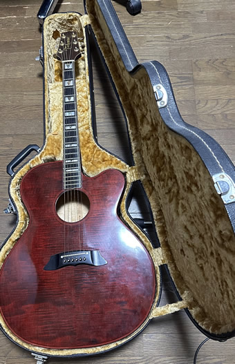 | さて、リハ開始に伴い、新たな楽器(コンガなど)を購入し、置き場が手狭になったこともあり、使用頻度が低い割に結構なスペースを取っていたいくつかの楽器を手放すことを決意。 以前RolandのショルダーキーボードやYAMAHAのシンセDX-7等を買い取ってくれた「楽器の買取り屋」から「何か売ってもいい楽器はありませんか?」と営業電話があったのが大きなきっかけではありました。 買い取ってもらったものの一つがTakamineの家具調エレアコ。 (品番とか型番とかは覚えてないっす) |