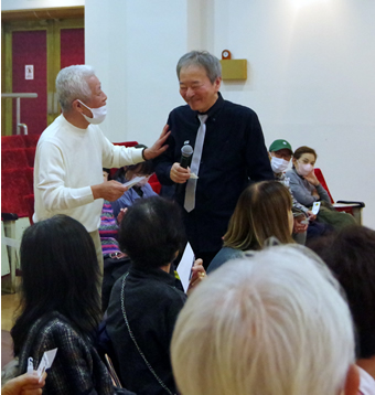 | キッチン馬鈴薯♪演奏前のくじ引き大会では くじをひくマスター自らが当選番号のチケットを持っていたり\(^^)/ さすがマスター!! 笑いもしみじみも、、いろんなものが散りばめられた今日のライブ、とても楽しかったです。 |